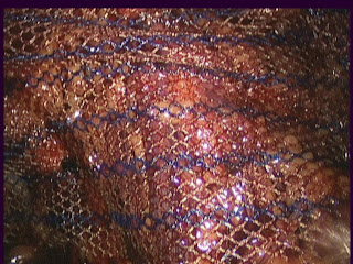 Wesentliches Element der OP ist das Aufblasen des Bauches. Mit Kohlenstoffgas wird die Hautdecke abgelöst und weggehalten, so dass die Chirurgen ihre Schlüsselochkunst entfalten können. Immerhin schaffen sie es ein mindestens handtellergroßes Netz zusammengefaltet in den Bauch zu schieben und dann dort zu entfalten und anzutackern. Suschi-Essen gehört vermutlich schon zur Grundausbildung.